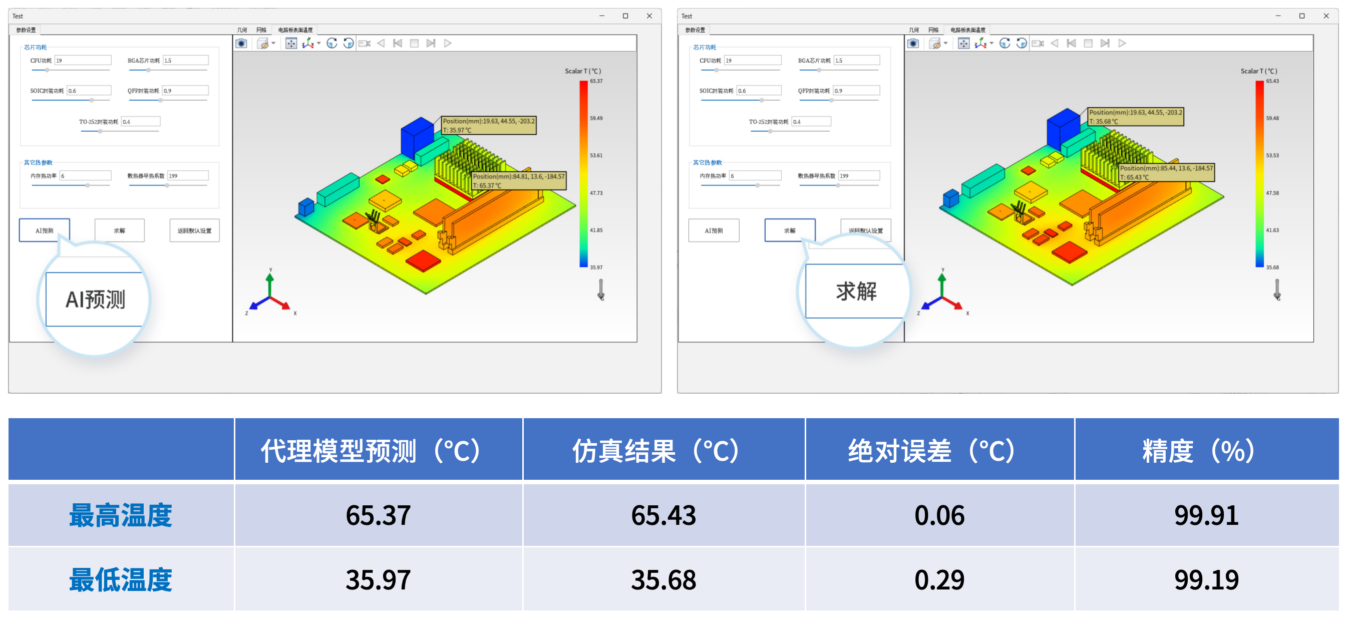 云道智造基于AI代理模型技术在AI for CAE领域实现重要突破。该技术以高保真仿真数据为基础,通过机器学习算法构建高精度代理模型,精准捕捉系统核心特征与动态规律。在某机箱散热案例中,代理模型在电路板热分布、关键点温度等指标上与传统仿真结果高度一致;同时,实现求解时间从小时级到秒级的跨越式提升,极大压缩了计算时长。