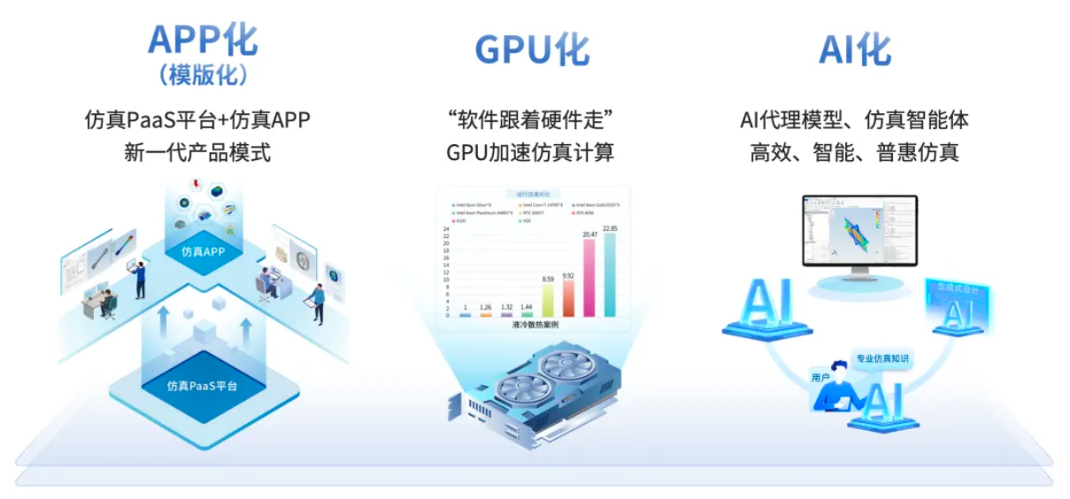 本届博览会上,云道智造系统展示了以“仿真PaaS平台+仿真APP”为核心的新一代产品体系,具体呈现了打造数字世界的物理引擎的技术路径。